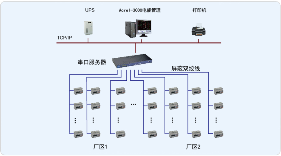 安科瑞電氣股份有限公司于2013年8月承接中國石油天然氣股份有限公司西南油氣田公司川西北氣礦江油輕烴廠電能管理系統(tǒng)的設計與實施,重要回路測量裝置分散安裝在整個廠區(qū)內(nèi),選用安科瑞DTSF1352/C三相電能表,采用屏蔽雙絞線直接接至數(shù)據(jù)采集器,然后通過網(wǎng)絡將數(shù)據(jù)傳至控制中心的監(jiān)控主機,保障了電能管理系統(tǒng)傳輸?shù)姆€(wěn)定性與實時性。系統(tǒng)實現(xiàn)了電力參數(shù)實時遙測、電能計量、電能報表等功能,做到集中管理、集中控制,省去了值班人員現(xiàn)場抄表的煩瑣,具有投資少、簡單實用、便于智能管理等優(yōu)點。