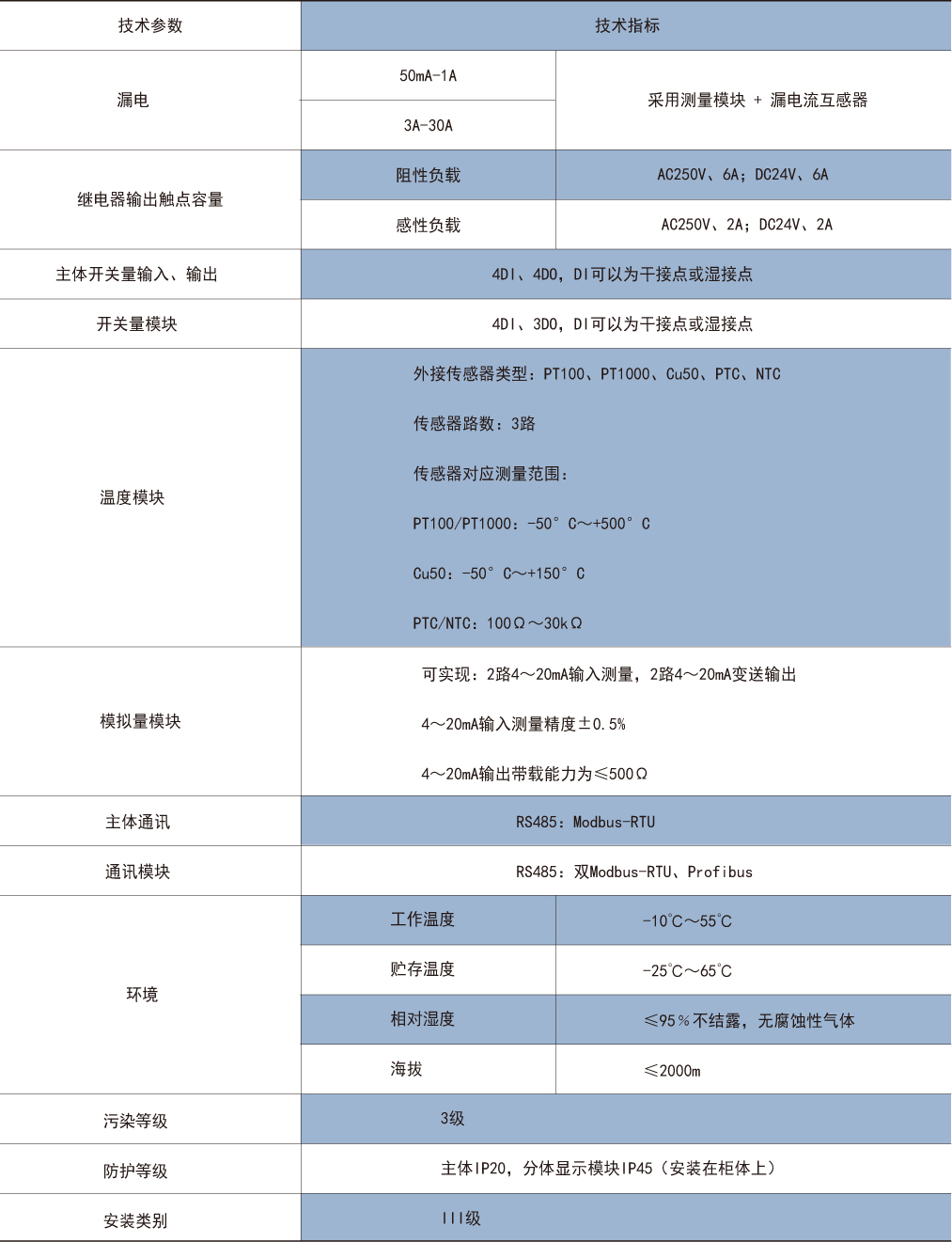 通訊協議:雙路RS485接口 Modbus/RTU協議