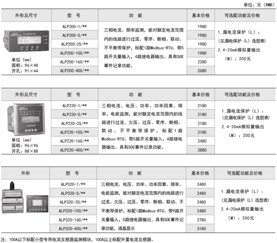 技術要求:輸入電壓AC 220V;工作頻率50Hz;電流變比200A/5A;漏電保護KB2模塊;準確級0.5。