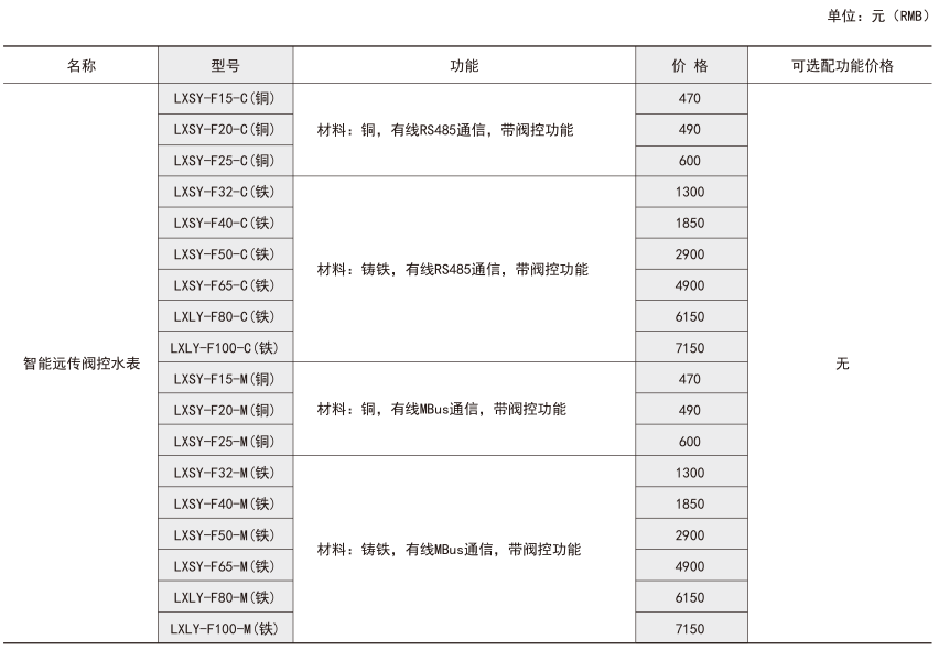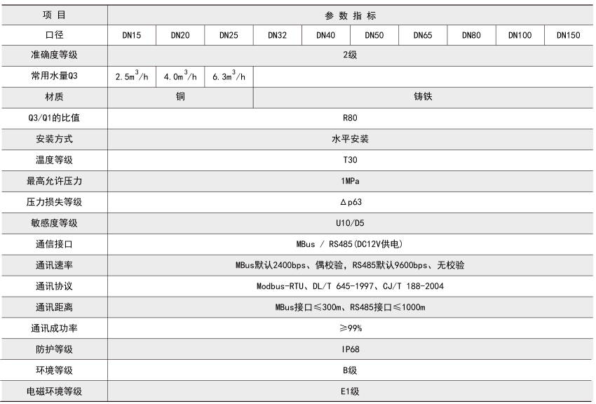 技術要求:帶閥控功能,口徑ND20mm,RS485通訊接口