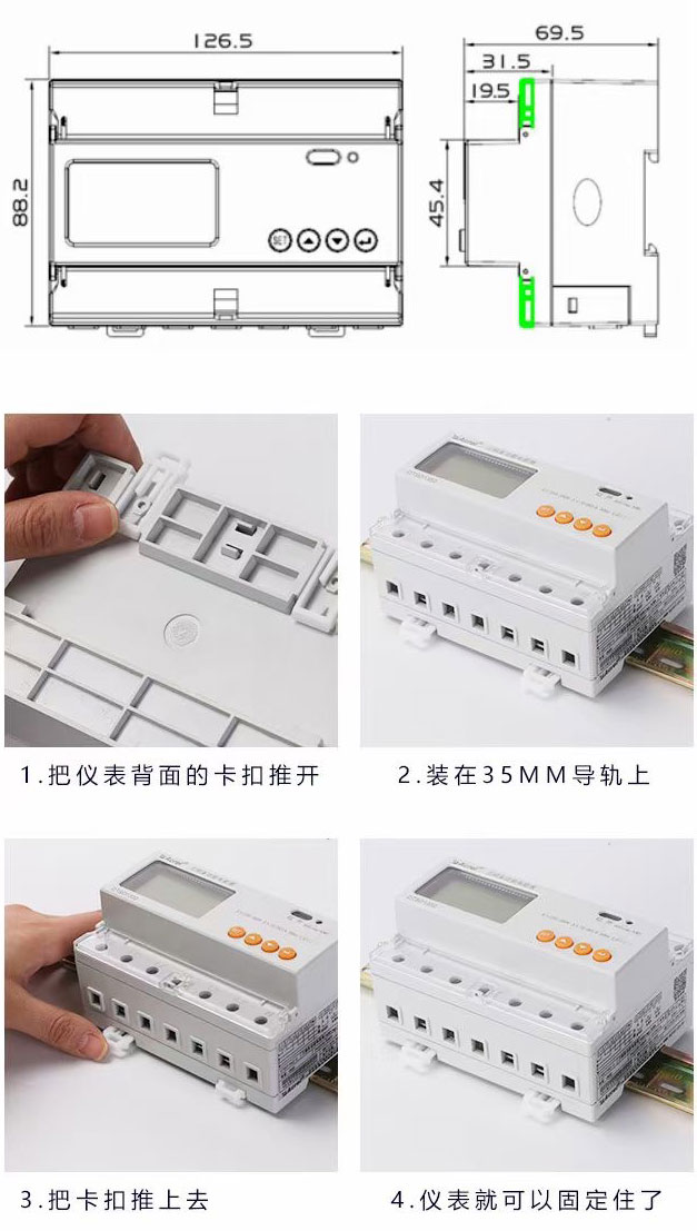 該系列產品采用DIN35mm導軌式安裝結構,體積小巧,能測量電能及其他電參量,可進行時鐘、費率時段等參數設置,精度高、可靠性好、性能指標符合國標GB/T17215-2002、GB/T17883-1999和電力行業標準DL/T614-2007對電能表的各項技術要求,并且具有電能脈沖輸出功能;可用RS485通訊接口與上位機實現數據交換。