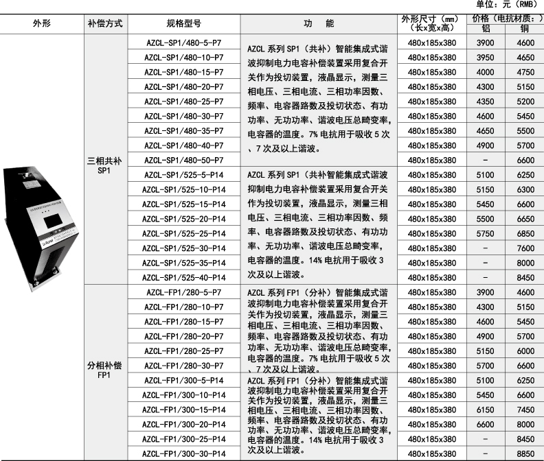 AZCL系列智能集成式諧波抑制電力電容補償裝置是應用于0.4kV、50Hz低壓配電中用于節省能源、降低線損、提高功率因數和電能質量的新一代無功補償設備。其中串接7%電抗器的產品使用于主要諧波為5次、7...