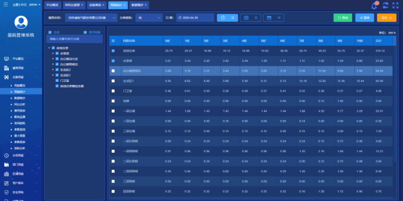 按照分項/區域/部門等不同的組織方式進行報表統計與展示,方便用戶從多個維度使用用能報表。